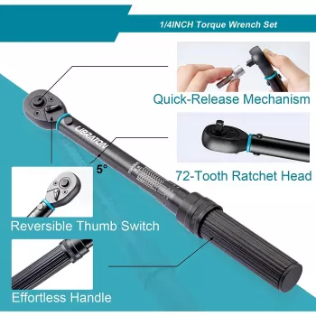 Bike Torque Wrench Set 1/4'' Drive, 5-25Nm, Hex & Torx Bit Sockets