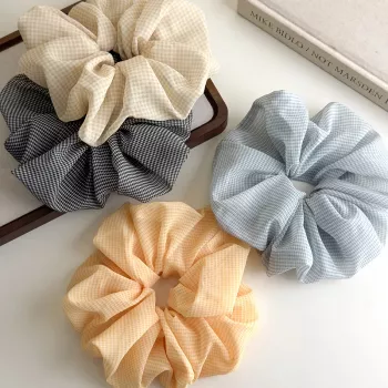 Retro Check Hair Scrunchies – Stylish Elastic Headbands for Women